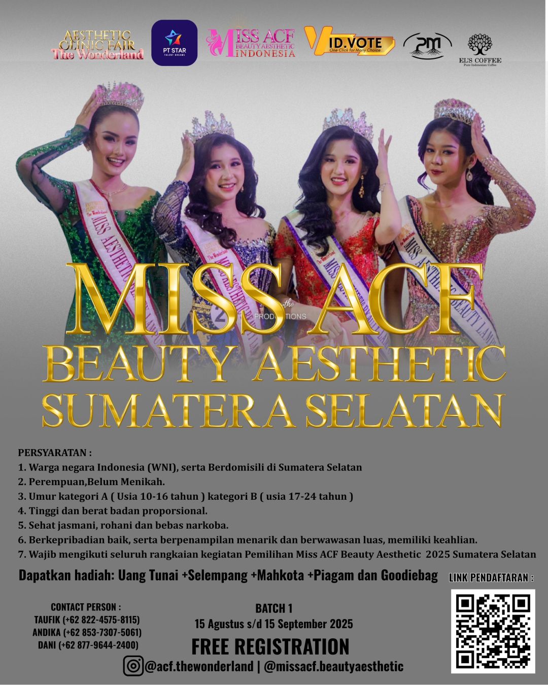 Pemilihan Miss Acf Beauty Aesthetic Sumatera Selatan